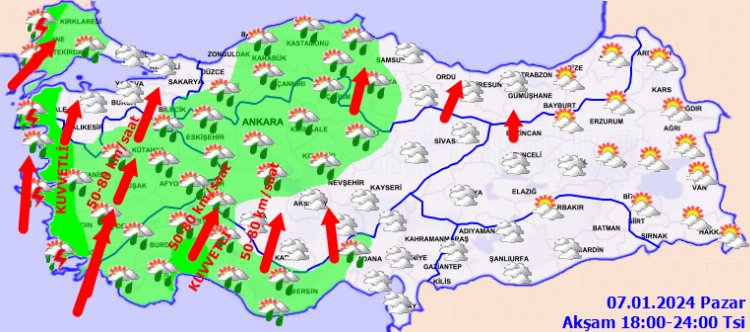 Rüzgârın batı kesimlerde güney ve güneybatı yönlerden kuvvetli ve kısa süreli fırtına şeklinde eseceği tahmin ediliyor. Gece ve sabah saatlerinde iç ve doğu kesimlerde yer yer pus ve sis hadisesi bekleniyor.