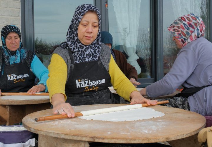 Kocaeli’de Eseler Köyü’nde 19 Ocak Cuma günü 3.’sü düzenlenecek Kaz Bayramı için köydeki kadınlar imece usulü kuru...
