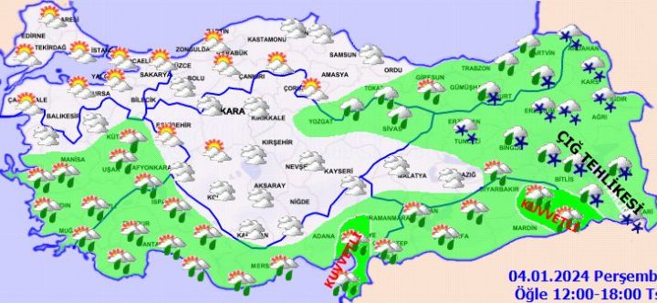 Meteoroloji, Ege ve Akdeniz illerine kuvvetli yağış, Güneydoğu ve Doğu illerine kar ve çığ uyarısı yaptı. ANKARA...
