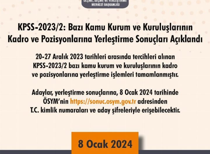 ÖSYM, bazı kurum ve kuruluşların akdro ve pozisyonlarına yerleştirme sonuçlarını açıkladı. ANKARA (İGFA) – ÖSYM’den yapılan yazılı...