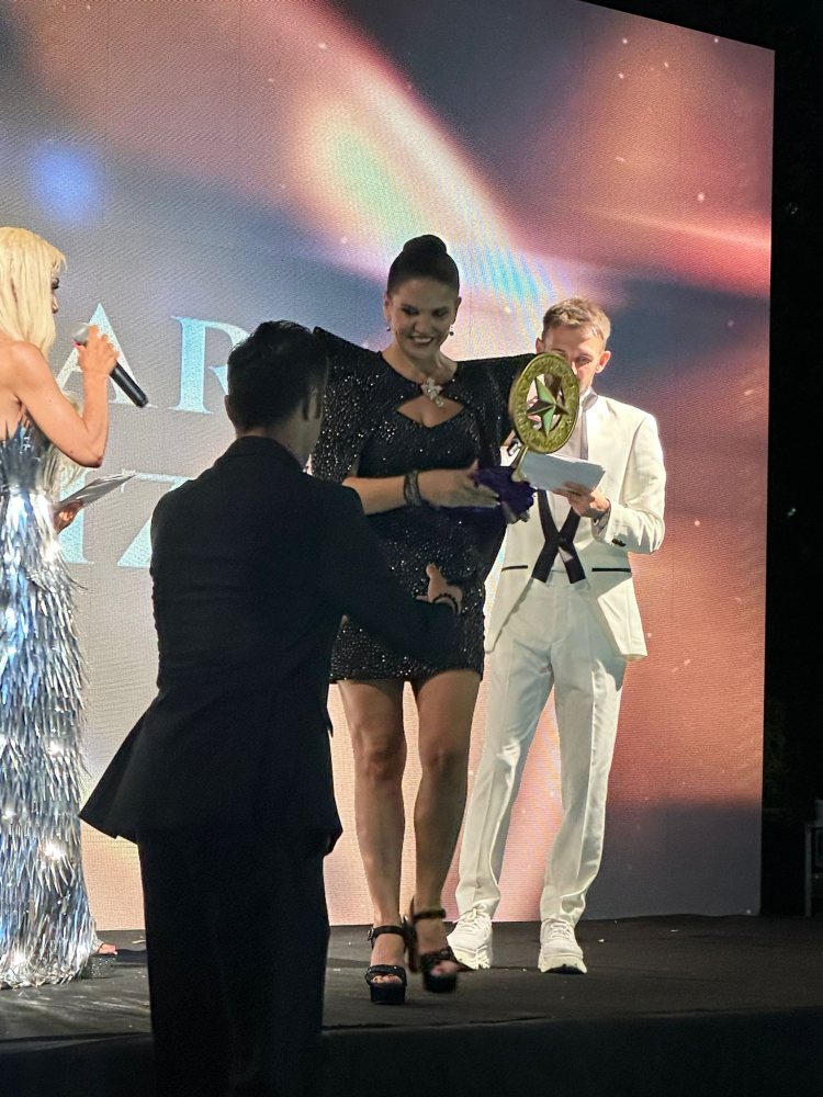 Dün gece gerçekleşen ve sanat, spor, müzik camiasının en başarılı isimlerinin ödüllendirildiği Yılın starları ödül gecesine sunucu ve organizatör İlknur Özkuş’un sahnedeki mesajı damga vurdu . Geceye Emrullah Köroğlu tasarımı çok şık bir elbise ile katılan Özkuş tüm dikkatleri de üzerine çekti .