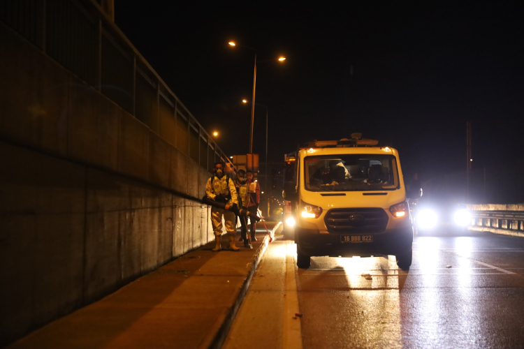 Park ve Bahçeler Dairesi Başkanı Hakan Tanrıöver, Bursa Büyükşehir Belediyesi’nin daha temiz ve daha yaşanabilir bir Bursa için gece gündüz çalıştığını söyledi. 147 kişilik ekip ve araçlarla temizlik ve estetik çalışmalarını yürüttüklerini belirten Tanrıöver, “Herhangi kaza durumunda yol üzerinde tekrar kazaya sebebiyet verebilecek olumsuzlukların önlenmesi için ani müdahale ekiplerimiz de hazır bulunuyor. İnsanların yaşamlarını olumsuz etkilememek ve trafik akışını engellememek için gece saatlerinde çalışmalarımızı yoğunlaştırıyoruz. Kentin temizliği için emek veren tüm çalışma arkadaşlarımıza teşekkür ediyorum. Çalışmalarımızla Bursalıları gülümsetmeye devam edeceğiz” dedi.