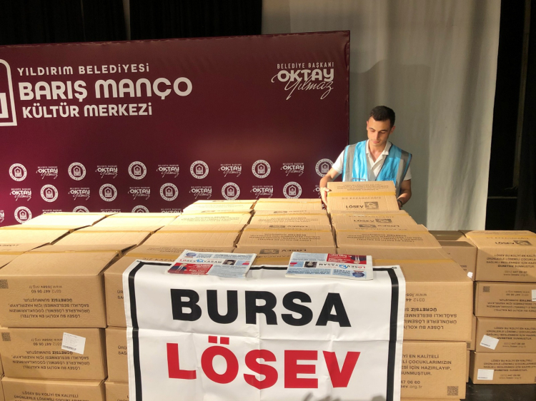 LÖSEV, Bursa’da Mutlu Et paketleriyle kayıtlı hasta ve ailelerine et ve et ürünleri desteğinde bulunmaya devam ediyor. İnegöl’ün ardından Bursa’daki Barış Manço Kültür Merkezi’nde düzenlenen et dağıtımında yüzlerce aileye Mutlu Et paketleri sunuldu