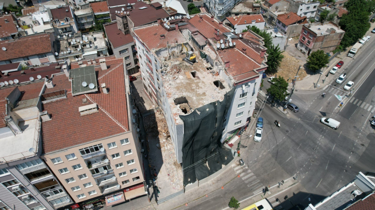 Yıldırım Belediyesi, Yıldırım Mahallesi 14. Yeşil Sokak’ta bulunan 19 daireden oluşan binayı, risk taşıdığı gerekçesiyle kentsel dönüşüm çalışmaları kapsamında yıkım çalışmasına başladı.