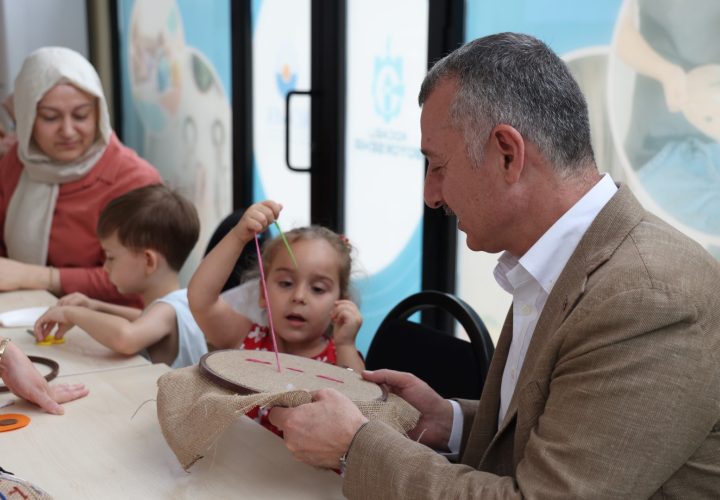 Çocuklarla ütü yapan, dikiş diken Başkan Büyükakın, KO-MEK mutfağında pişen ve birlik-beraberliğin sembolü olan aşureyi minik dostlarıyla...
