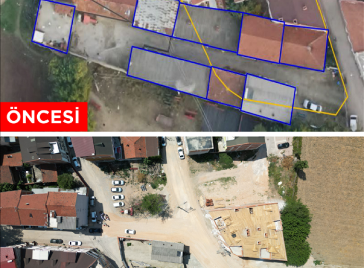İnegöl Belediyesi, Mesudiye Mahallesi Şehit Er Şenol Çakır Sokak ile Ay Sokak arasında yaptığı kamulaştırma ve yıkım...