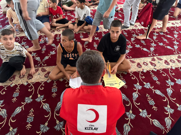 Şehmus EDİS / MARDİN (İGFA) – Türk Kızılay’ı Artuklu Şube Yönetimi, Mardin Kızılay il Başkanı, Kadın Kızılay Birimi, Mardin Kızılay Toplum Merkezi, Kızılay Gönüllüleri ve Artuklu İlçe Müftüsü Abdullah Işık Hoca’nın da katılımı ile gerçekleştirdiği etkinlikler kapsamında Yaz Kur’an kurslarında eğitim gören çocuklara Türk Kızılay Derneği tanıtıldı. Kızılay’ın ülke genelinde ve Dünyada yaptığı faaliyetler anlatıldı.