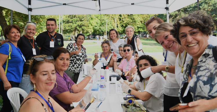 BURSA (İGFA) – Merinos Parkı’nda düzenlenen Bursa Kadın ve Yaşam Forumu’na katılan kadınlar, Türkan Saylan Taş Boyama, Bahriye Üçok Resim, Cahide Sonku Doğanın Dili Geri Dönüşüm, Afife Jale doğaçlama atölyelerinde alanında uzman eğitmenlerden bilgiler alıp pratik yapma imkânı buldu.