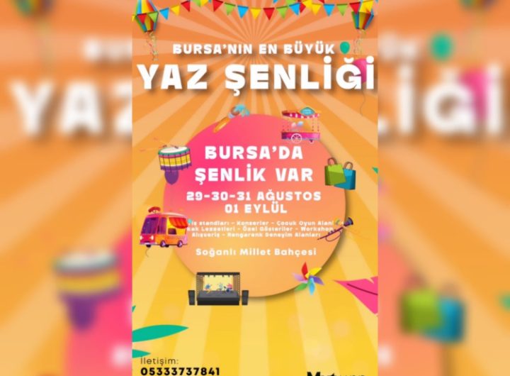 Bursa’da 29 Ağustos-1 Eylül tarihleri arasında Myturn Events Merve Yavaş organizatörlüğünde Alışveriş Ve Eğlence Festivali düzenlenecek. Osmangazi...