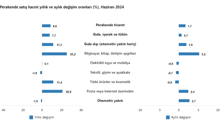 Ticaret Satış Hacim Endeksi’ne göre perakende satış hacminde yıllık ve aylık değişimlerde en çok değişim ‘bilgisayar, kitap,...