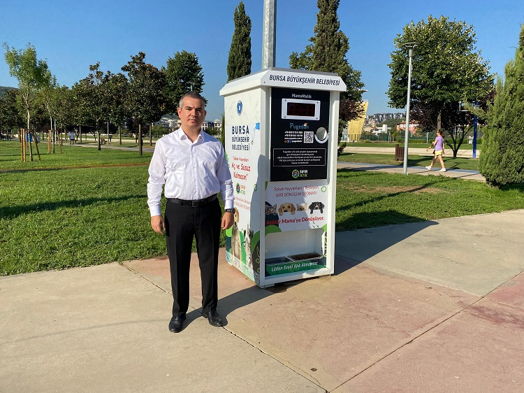 Bursa Büyükşehir Belediyesi, kentin farklı noktalarına yerleştirdiği mamamatik otomatlarıyla plastik, metal ve cam gibi atıkların hem geri dönüşümünü sağlıyor hem de can dostlar için mamaya dönüştürüyor.