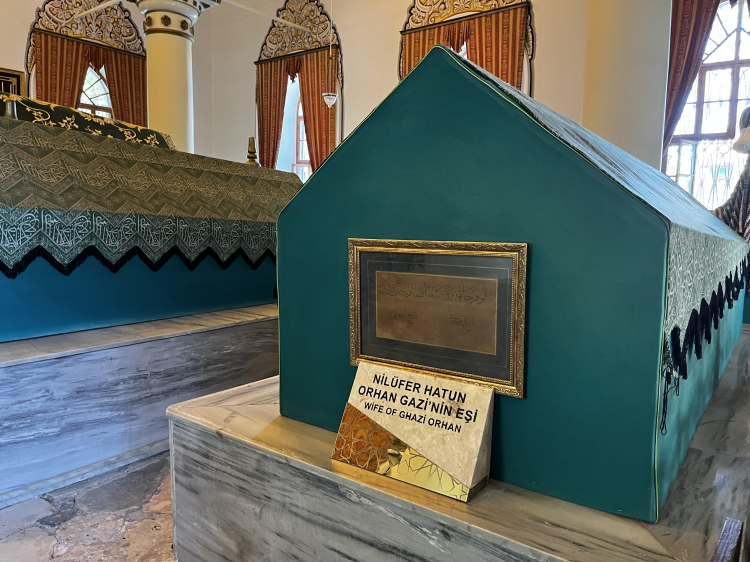 Türbenin içinde Orhangazi’nin hanımı Nilüfer Hatun, çocukları ve yakınlarının sandukaları da bulunmaktadır.