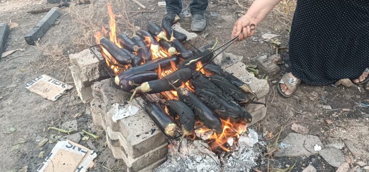 Mardin’de sofraların vazgeçilmez lezzeti babaganuç hazırlığına başlayan kadınlar, 47 dereceyi bulan sıcaklarda ateşte patlıcan közlüyor. Şehmus EDİS...