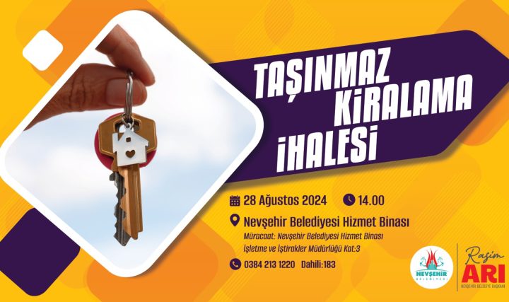 Nevşehir Belediyesi, çeşitli mahallelerde bulunan 27 taşınmazının 3 yıl süre ile kiralanması için 28 Ağustos 2024 tarihinde...