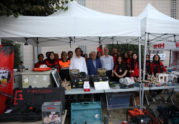 İnegöl Belediyesi 17 Ağustos Marmara depreminin 25’inci yıl dönümünde kent merkezinde kurulan stant ve açılan sergiyle deprem...