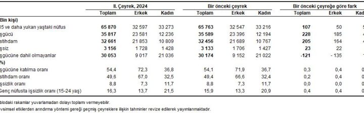 İşgücü İstatistikleri’nde 2. çeyrek raporunda 15 ve daha yukarı yaştaki kişilerde işsiz sayısı bir önceki çeyreğe göre...