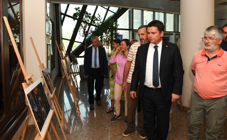Konuşmaların arından Başkan Aydın ve katılımcılar, sergiyi gezerek fotoğrafları inceledi.