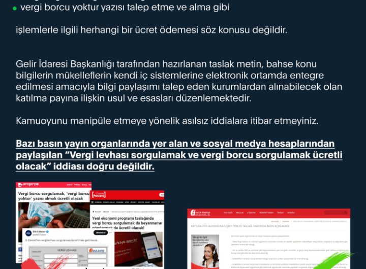 Bazı basın yayın organlarında yer alan ve sosyal medya hesaplarından paylaşılan “Vergi levhası sorgulamak ve vergi borcu...