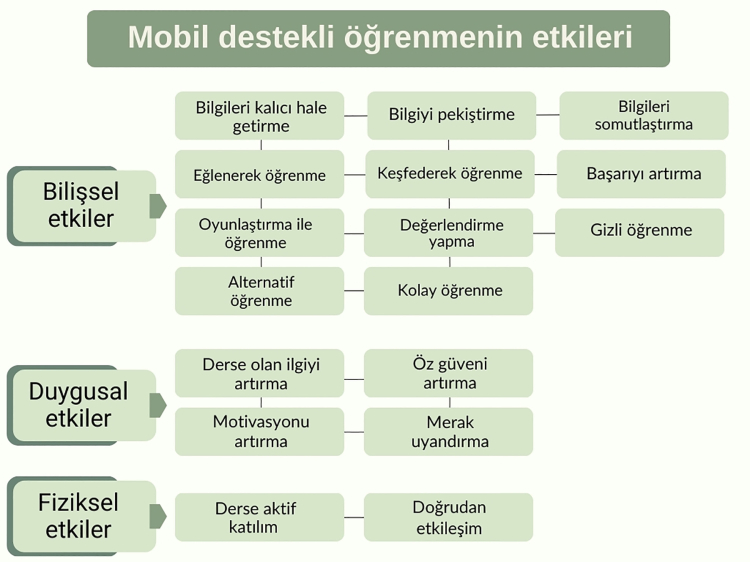 Araştırmacılar mobil cihazlarla yapılan öğrenme süreçlerinin, öğrencilerin bilgi ve becerilerini geliştirdiğini kaydediyor. Ayrıca bu süreçler bağımsız ve iş birliğine dayalı öğrenmeyi artırıyor. İsteksiz öğrencileri öğrenmeye teşvik ediyor ve öğrencilerin özgüven ile özsaygı kazanmalarına destek oluyor. Mobil destekli okul dışı öğrenme ortamları oluşturmak için GPS, haritalar, pusula, videolar, resimler, sınavlar, görevler ve oyun öğeleri gibi araçlardan kolayca yararlanılabiliyor. Bu tür uygulamaların öğrenme süreçleri üzerinde olumlu etkileri bulunuyor.