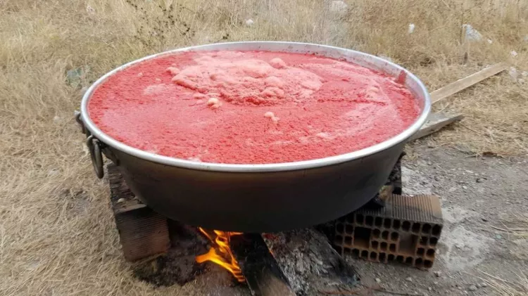 Salçalık domateste hasat zamanının gelmesi ile Bursa’da salça sezonu açıldı. Yeri müsait olanlar kışlık salçalarını kazanlarda kaynatmaya başladı.