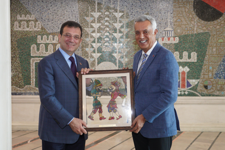 İlk olarak İstanbul Büyükşehir Belediye Başkanı Ekrem İmamoğlu’nu makamında ziyaret eden Mehmet Yıldız ve beraberindeki heyet, komşu şehirlerin ortak sorunlarını ve birlikte oluşturulacak çözüm önerilerini değerlendirdi. Samimi bir ortamda gerçekleşen ziyarette karşılıklı iş birliği alanlarının geliştirilmesi de ele alındı. Ziyaretin sonunda günün anısına Mehmet Yıldız tarafından İstanbul Büyükşehir Belediye Başkanı Ekrem İmamoğlu’na Hacivat ve Karagöz tablosu hediye edildi.