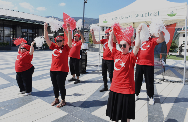 Osmangazi Meydanı’nda düzenlenen 30 Ağustos Zafer Bayramı kutlama etkinliğine; Osmangazi Belediye Başkanı Erkan Aydın, Osmangazi Belediyesi Başkan Yardımcıları Mutlu Esendemir, Sefa Yılmaz ve Mücahit Yıldızhan, engelli bireyler ve aileleri katıldı. Saygı duruşu ve İstiklal Marşı ile başlayan programda, engelli bireyler tarafından şiirlerin okunup özel gösterilerin yapıldığı etkinlik izleyenler tarafından büyük beğeni aldı.