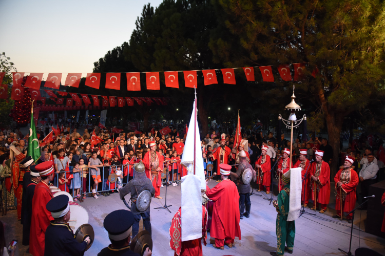 BURSA (İGFA) – Yıldırım Belediyesi, Büyük Taarruz ve Başkomutanlık Meydan Muharebesi’nin 102’nci yıl dönümü ve 30 Ağustos Zafer Bayramı’nı büyük bir coşku ile kutladı. Yıldırım Belediye Başkanı Oktay Yılmaz, Yıldırım ilçe Kaymakamı Metin Esen, AK Parti Yıldırım İlçe Başkanı İrfan Akkaya, il ve ilçe yöneticileri ile vatandaşların katıldığı 30 Ağustos programları kapsamında Gökdere Meydanı’ndan Ahmet Taner Kışlalı Meydanı’na zafer yürüyüşü gerçekleştirildi. Ardından protokol ve misafirler Ahmet Taner Kışlalı Meydanı’nda ‘Malazgirt’ten Büyük Taarruza Tarih Tüneli ve Sergisi’ni ziyaret etti. Meydanda düzenlenen mehter takımı ve erguvan halk dansları gösterisi, Dj performansı ve Sanatçı Cengiz Ateş’in zafer konseri ile Yıldırımlılar unutulmayacak bir Zafer Bayramı yaşadı.