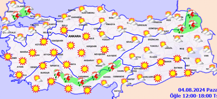 Yurdun bazı illerinde yerel sağanak ve gök gürültülü sağanak yağışlı, diğer illerde az bulutlu ve açık bir...