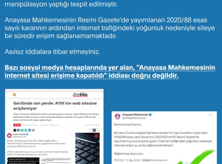 “Anayasa Mahkemesinin internet sitesi erişime kapatıldı” iddialarının dezenformasyondan ibaret olduğu açıklandı. ANKARA (İGFA) – İletişim Başkanlığı bünyesindeki...