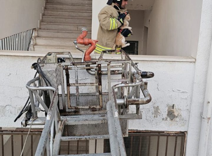 Mardin Büyükşehir Belediyesi itfaiye ekipleri, lisede mahsur kalan kediyi kurtardı. Şehmus EDİS / MARDİN (İGFA) – Nusaybin...