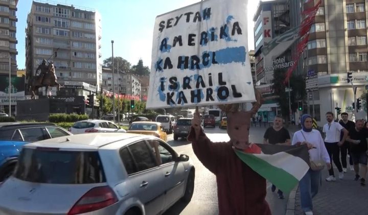 Bursa’da birbirinden farklı hayvan kostümleri giyen tiyatro sanatçısı, elindeki pankartlarla trafik ışıklarında İsrail ve Amerika’yı protesto etti....