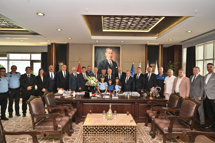 Bursa Büyükşehir Belediye Başkanı Mustafa Bozbey, Zabıta Teşkilatı’nın kuruluşunun 198. yılı etkinlikleri kapsamında zabıta birimlerinin yöneticileri ve personelini makamında ağırladı. Zabıta teşkilatının Bursa’nın huzuru ve güveni için gece gündüz demeden çalıştığını söyleyen Başkan Mustafa Bozbey, tüm zabıta personelinin Zabıta Haftası’nı kutladı.