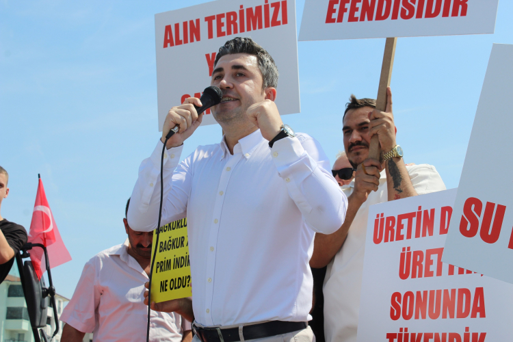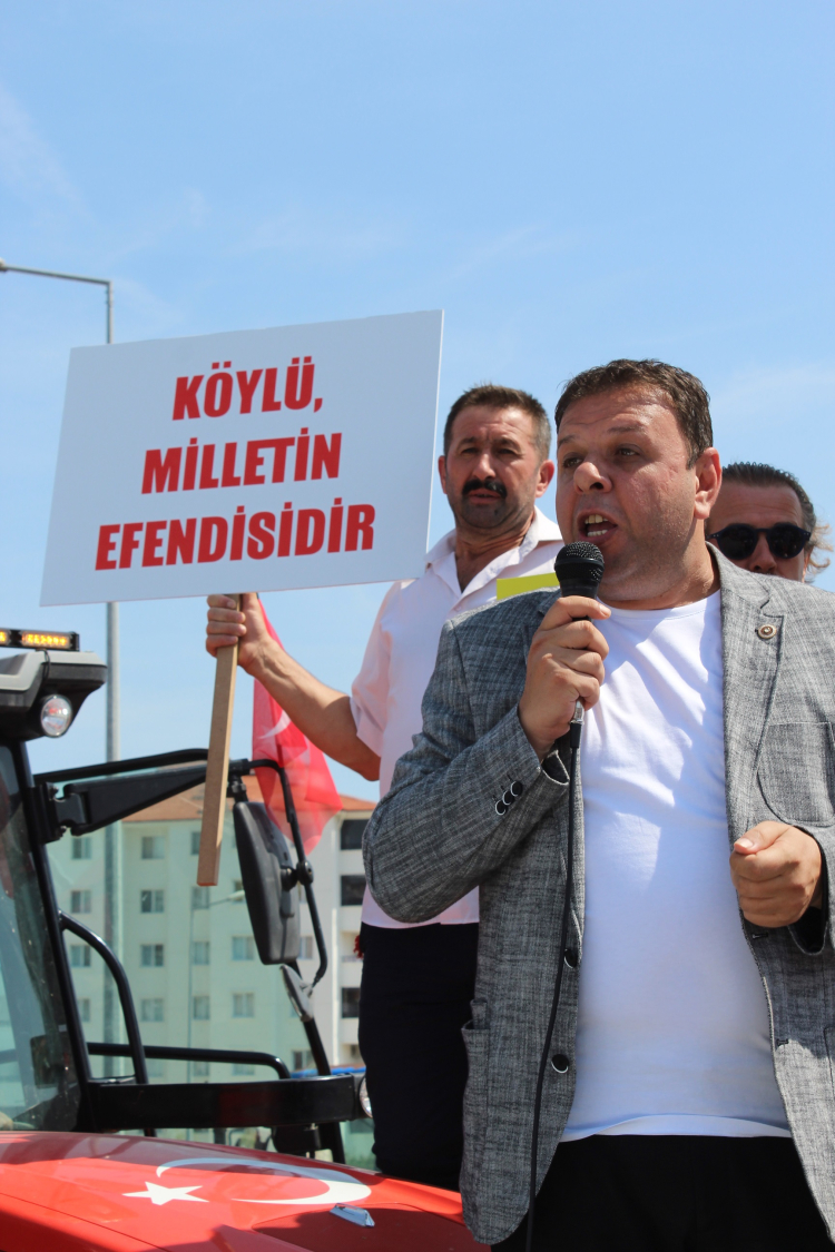 Çiftçinin zor durumda olduğunu hatırlatan İlçe Başkanı Çakır, konuşmasına şöyle devam etti: “Çiftçimiz zor durumda çiftçimiz hakkını alamıyor yıllardır her sene emek veriyor, çabalıyor ama yine hakkını alamıyor.Bakın pazartesi günü okullar başlayacak çocuklar babasının eline bakıyor.Çocuklar okula gelecek çantayı nasıl alacak anne babası?Ayakkabısını nasıl alacak? Defter, kitap nasıl alacak?Çocuklar üniversiteye gidecekler kalacak yurtları yok. Çiftçi evladına ev kiralayacak parası yok. Tek umudu mahsulüydü. Önce buğdayda hayal kırıklığına uğradı. Ardından ayçiçeğinde hayal kırıklığına uğradı ama kendisine sahip çıkan arkasında duran kimseyi bulamadı.Kuraklık yaşıyoruz. Ama onun karşılığında çiftçimiz destek alamıyor.Bakın kendi çiftçisine vermedikleri parayı Rus çiftçisine, Ukrayna çiftçisine verecekler. Biz çok bir şey istemiyoruz.Onlara ne veriyorsanız, Türk çiftçisine de aynı desteği verin. Başka bir şey istemiyoruz.”