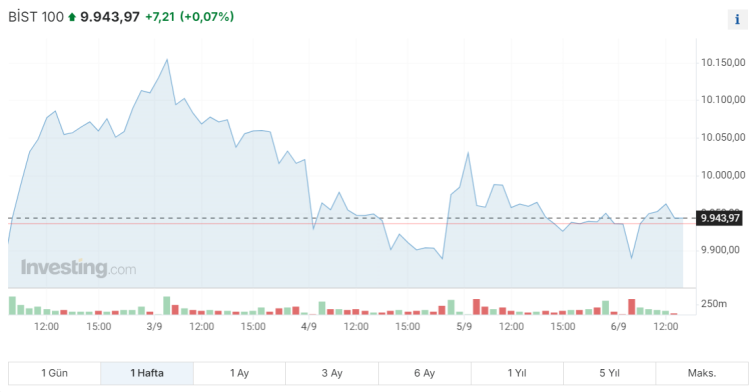 Son günlerde Borsa İstanbul’da dalgalı bir seyir izleniyor. 3 Eylül’de 10.150 puanla kapanış yapan BIST 100 endeksi, 4 Eylül’de 9.890 puana kadar geriledi. Bu düşüş, yatırımcılar arasında tedirginlik yaratırken, dün (6 Eylül) endeks güne -0,56 puan düşüşle 9.936,2 puandan başladı. Foreks Haber anketine göre, BIST 100 endeksinin güne 22,84 puan artışla başlaması bekleniyordu, ancak gerçekleşen sonuç beklentilerin altında kaldı.
