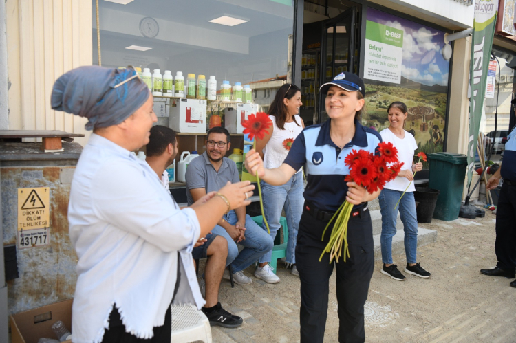 Tören, hatıra fotoğrafı çekilmesinin ardından sona ererken, zabıta ekipleri Keşan halkına çiçek dağıttı.