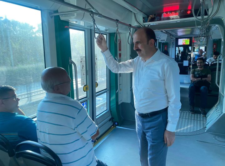 Konya Büyükşehir Belediye Başkanı Uğur İbrahim Altay, şehir merkezi ile Selçuk Üniversitesi arasında çalışan tramvayda vatandaşlarla sohbet...