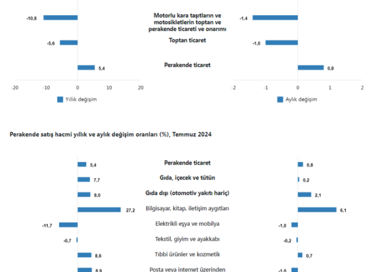 Ticaret satış hacmi yıllık yüzde 3,4 azaldı, perakende satış hacmi yıllık yüzde 5,4 artış kaydetti. Perakende satış...
