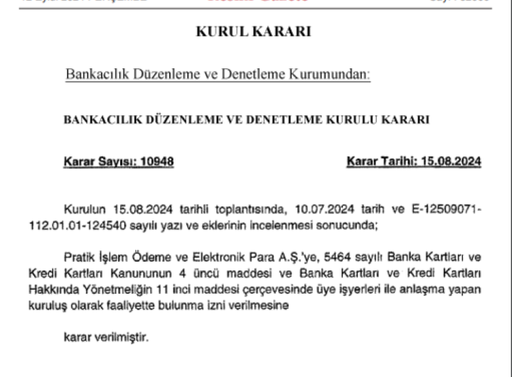 BDDK, Pratik İşlem Ödeme ve Elektronik Para AŞ’ye faaliyette bulunma izni verdi. Kuruluş, Banka ve Kredi Kartları...