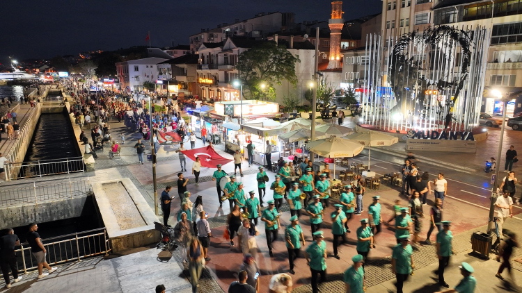 BURSA (İGFA) – 12 Eylül Mudanya’nın düşman işgalinden kurtuluşunun 102’nci yıldönümü etkinlikleri kapsamında gün içerisinde düzenlenen resmi tören ardından akşam da Mudanya Belediyesi’nin organizasyonuyla kortej yürüyüşü, söyleşinin yanı sıra uluslararası etkinliklerle devam etti.