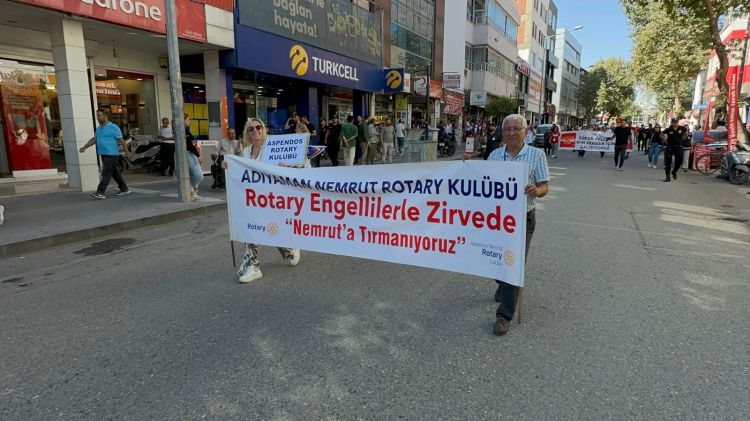 Asrın felaketi olarak adlandırılan 6 Şubat depremlerinin ardından Adıyaman Nemrut Rotary Kulübü’nün bu yıl 23.’sünü gerçekleştirdiği “Engellilerle Zirvede Nemrut’a Tırmanıyoruz” projesi kortej yürüyüşü ile başladı.