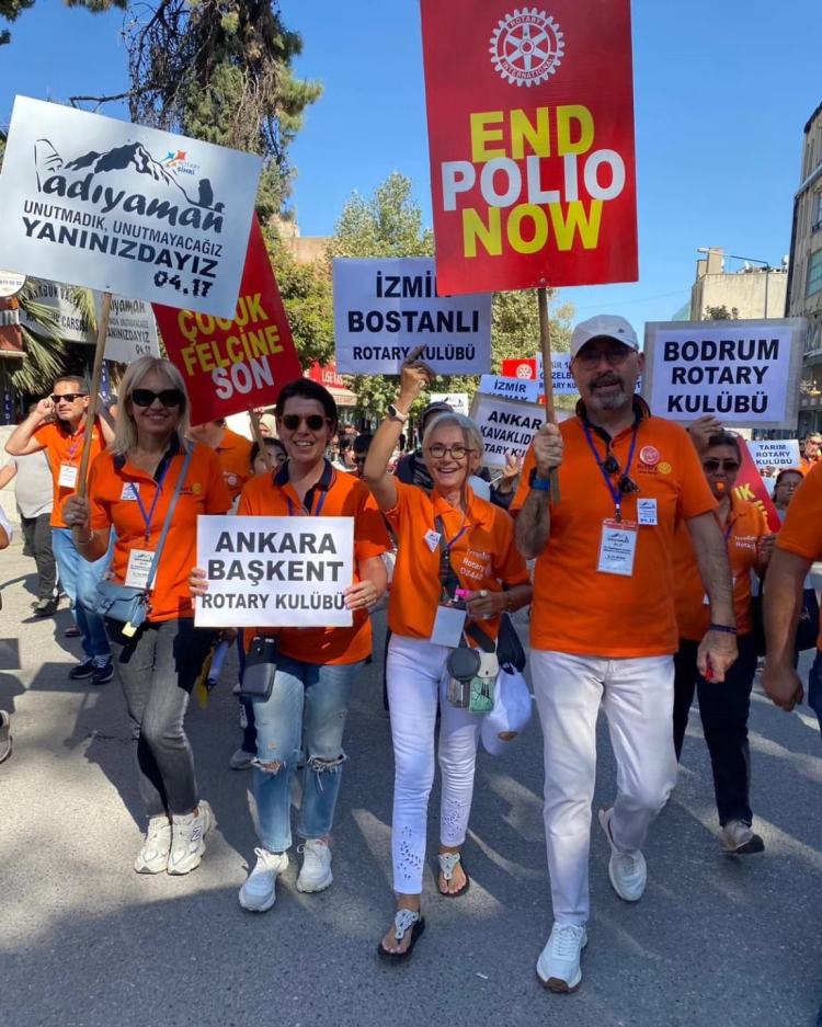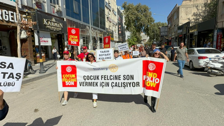 Düdükler çalarak yapılan yürüyüşte ayrıca “Çocuk Felci” hastalığına ve aşının önemine dikkat çekmek halka çeşitli broşürlerde dağıtıldı.
