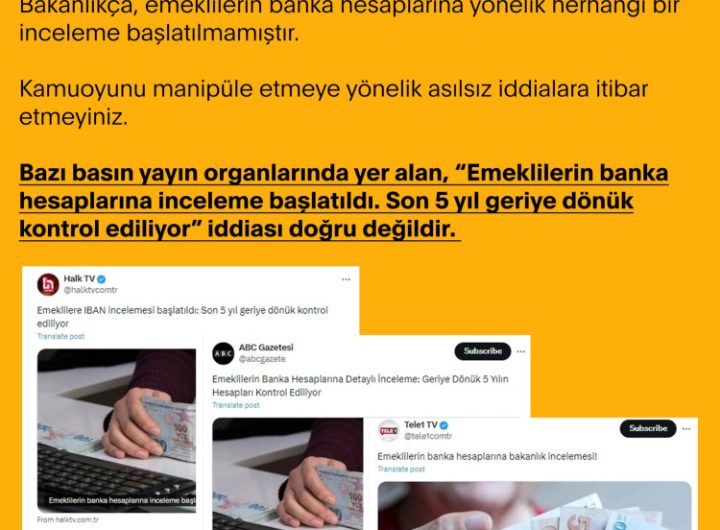 Hazine ve Maliye Bakanlığı tarafından bazı emeklilerin hesaplarının üçüncü şahıslar veya şirketler tarafından kullanıldığına dair bulgulara ulaştığı...