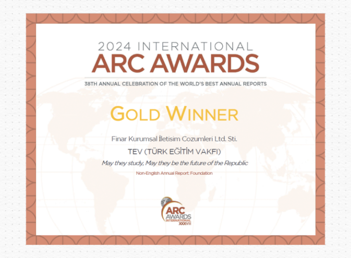 Türk Eğitim Vakfı (TEV), 2023 Vision Awards’da “Entegre Faaliyet Raporu” ile Sivil Toplum Kuruluşu kategorisinde altın, Bölgesel...