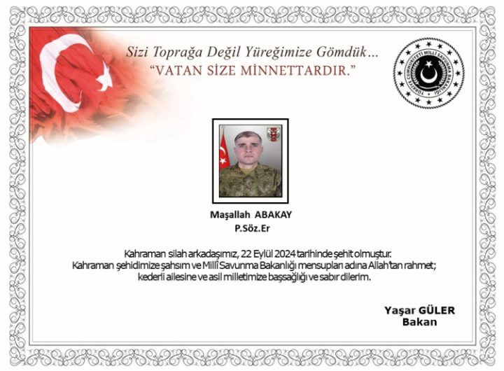 Pençe Kilit’e terör örgütü mensuplarının sızma girişimi sırasında Piyade Sözleşmeli Er Maşallah Abakay şehit oldu. ANKARA (İGFA)...