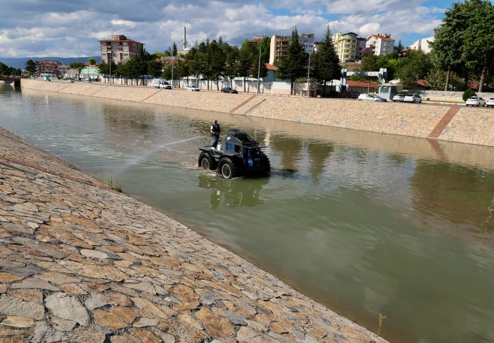 Yeşilırmak’ta görülen devasa araca görenler önce bir anlam veremedi. Dev tekerleriyle suda ilerleyen araç görenleri şaşkına çevirdi....