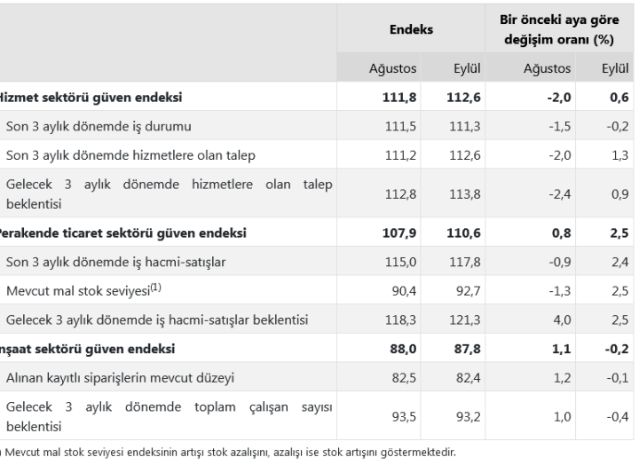 Güven endeksi hizmet sektöründe yüzde 0,6, perakende ticaret sektöründe yüzde 2,5 artarken, inşaat sektöründe yüzde 0,2 azaldı....