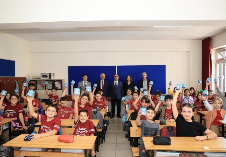 Gebze Belediyesi tarafından geleneksel olarak düzenlenen Gebze Kitap Fuarı öncesinde ilçede eğitim gören öğrencilere kumbara hediye ediliyor....