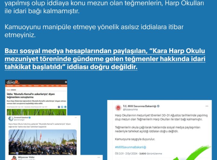 Kara Harp Okulu’ndaki teğmenler hakkında idari tahkikat başlatıldığı iddiasına ilişkin açıklama İletişim Başkanlığı’ndan geldi. ANKARA (İGFA) –...