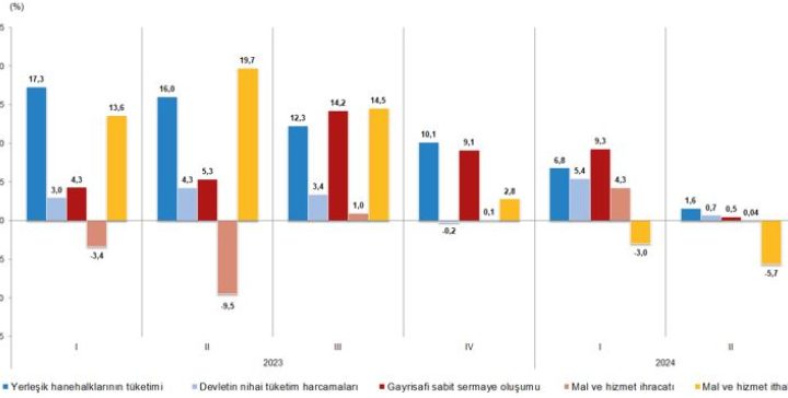 Nisan-Haziran ayına ilişkin Türkiye ekonomisi yılın ikinci çeyreğinde yüzde 2,5 büyüdü. Hanehalkı nihai tüketim harcamaları yüzde 1,6...