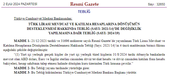 Merkez Bankası, TL mevduatı destekleyecek yeni adım attı. TL Mevduat ve Katılma Hesaplarına Dönüşümün Desteklenmesi ile Altın...